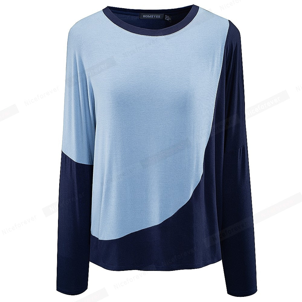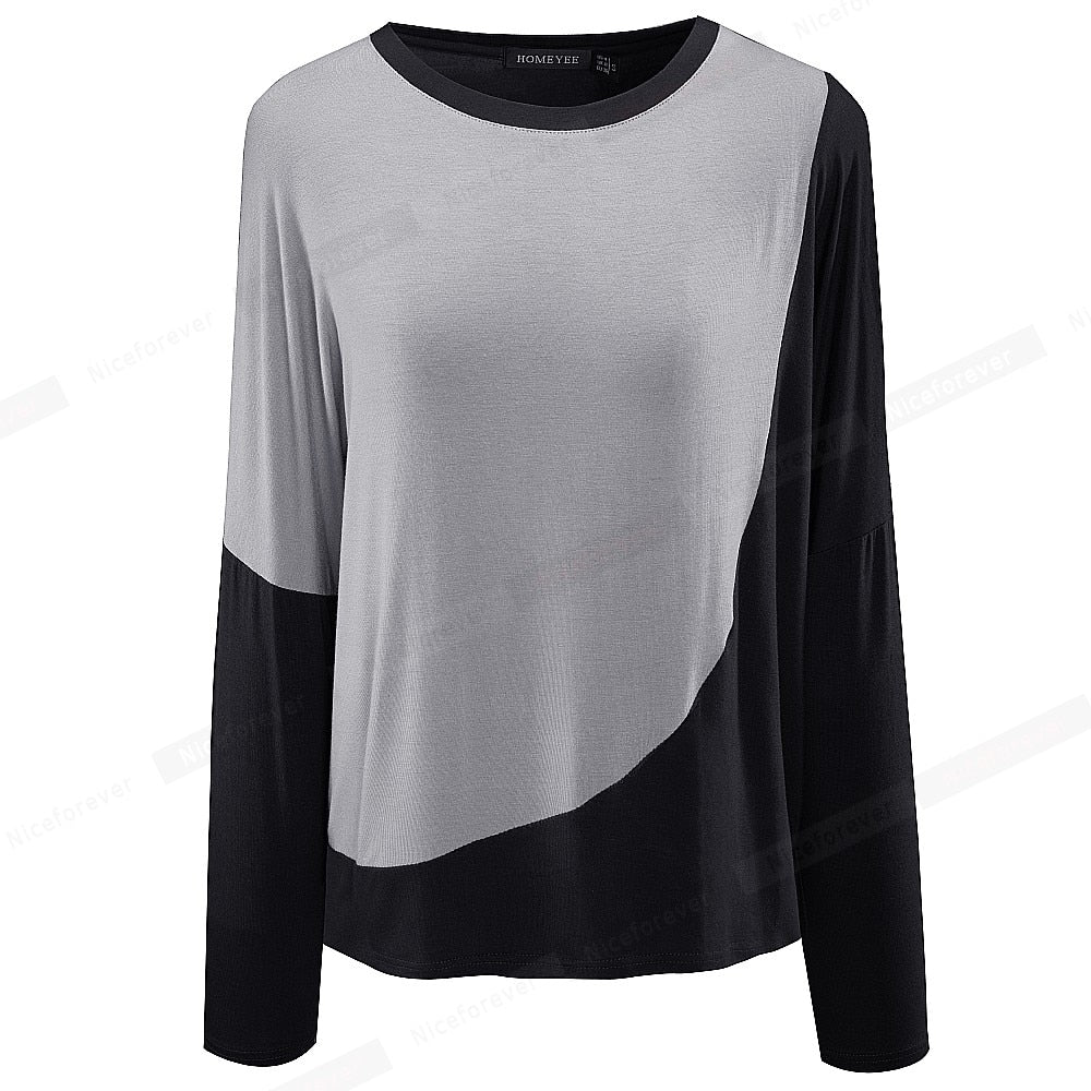 Women Fashion Contrast Color Patchwork T-Shirts Casual Oversized Shift Tees Tops Spring btyT058